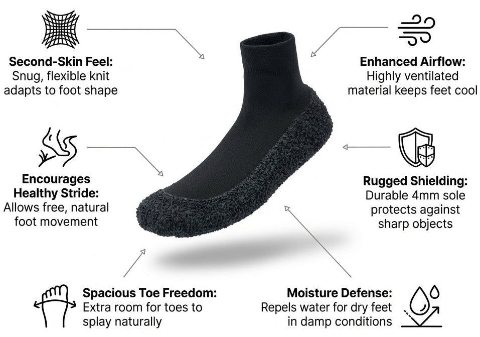Soka™ combines the flexibility of socks with the protection of shoes. They’re ultra-light, breathable, and designed to move naturally with your feet — giving you comfort, balance, and freedom in every step.